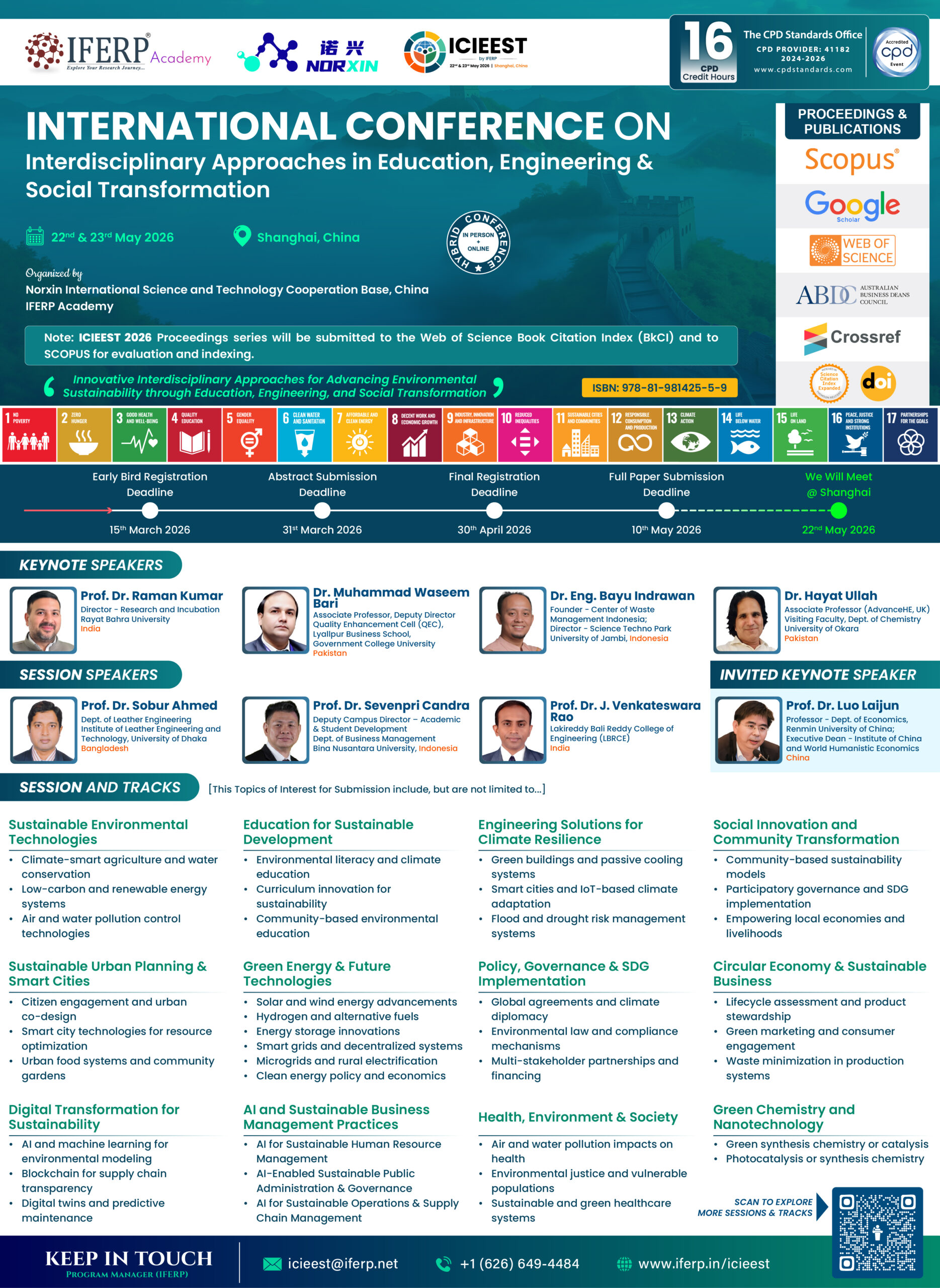 ICIEEST 2026 is a global interdisciplinary forum hosted by IFERP that brings together experts from education, engineering, and social sciences to explore practical and research-based solutions for advancing environmental sustainability. The conference emphasizes collaborative innovation and transformative practices aimed at tackling real-world challenges through integrated thinking and global partnerships.